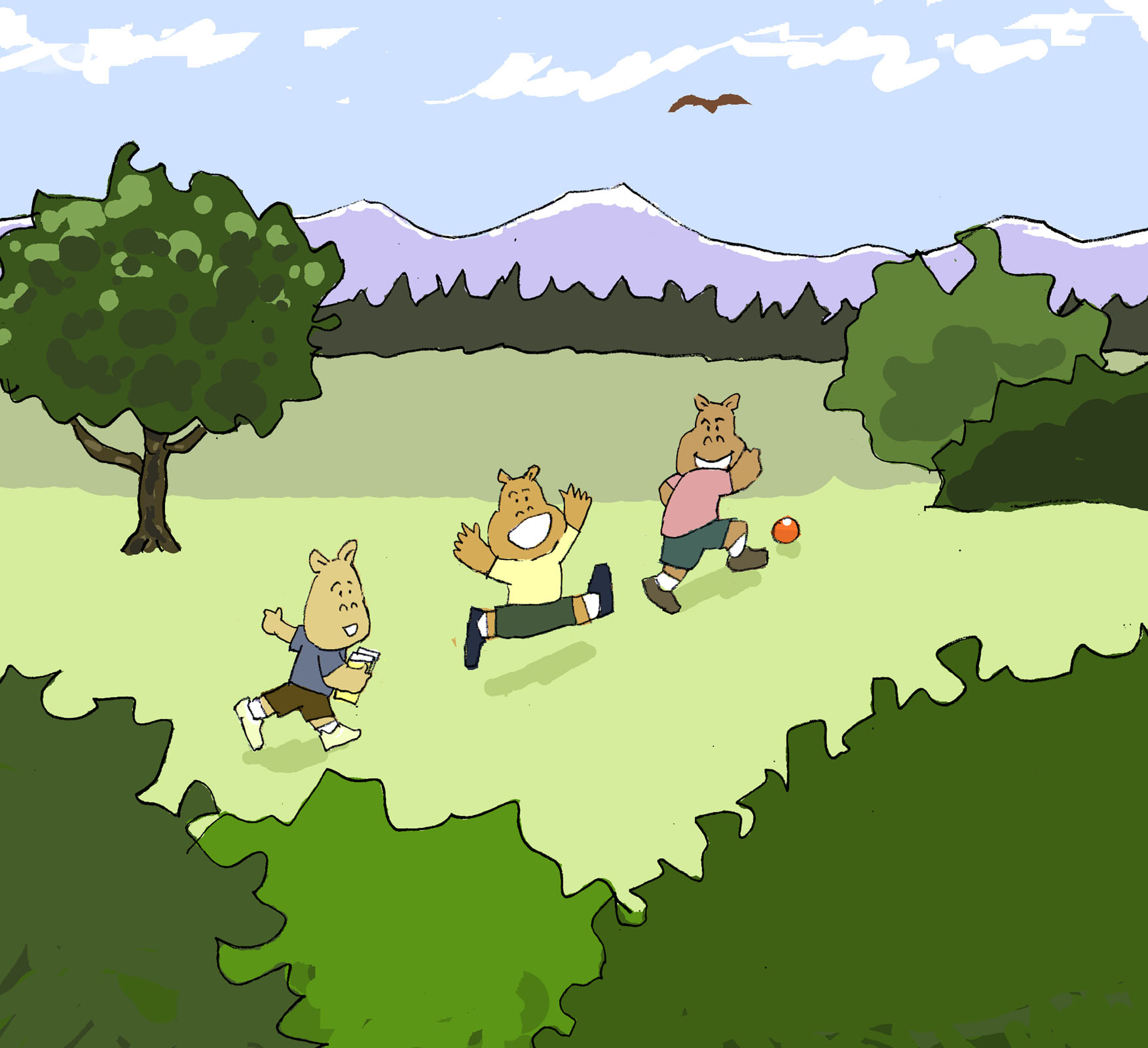 3びきはばったりであいました。