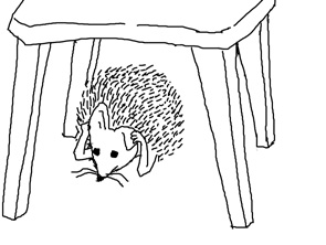 はりねずみは椅子の下に逃げました。