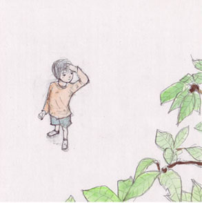 誰にも言えずふさいだ気持ちで帰るとちゅう、久しぶりにカシの木の下で立ち止まった。