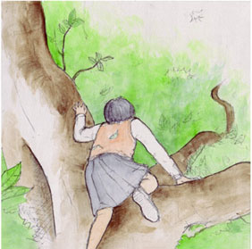 そしてこの間と同じようにカシの木の上へ登っていった。