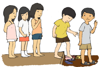 エリ 「早くおまいりしてしまおう。」