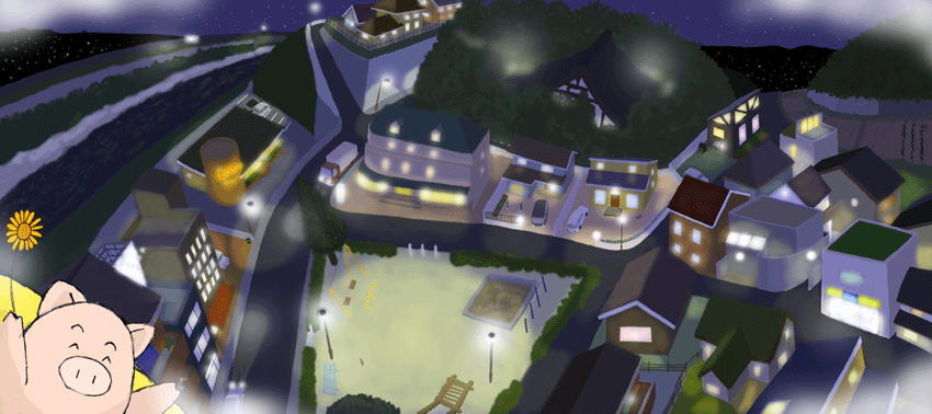 「きみのすんでいるまちだよ。」